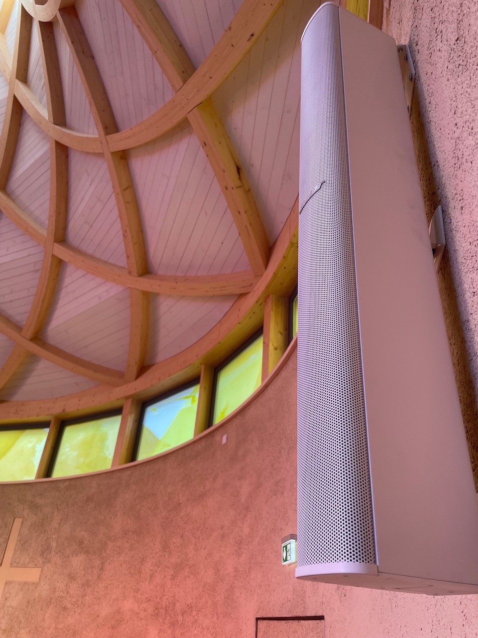 Innovative BOSE Beschallung für runde Kirchenräume in Taucha & Dresden Süd mit Live-Übertragung und barrierefreier Hörunterstützung.
