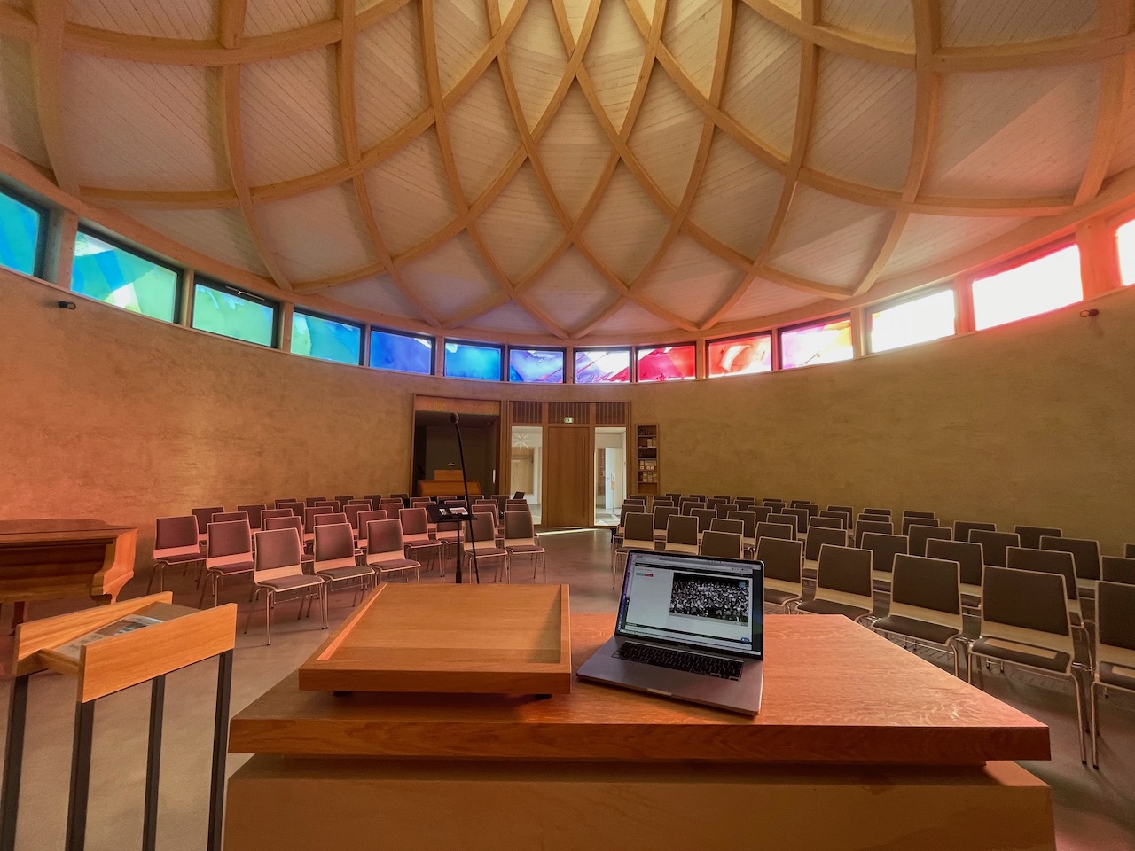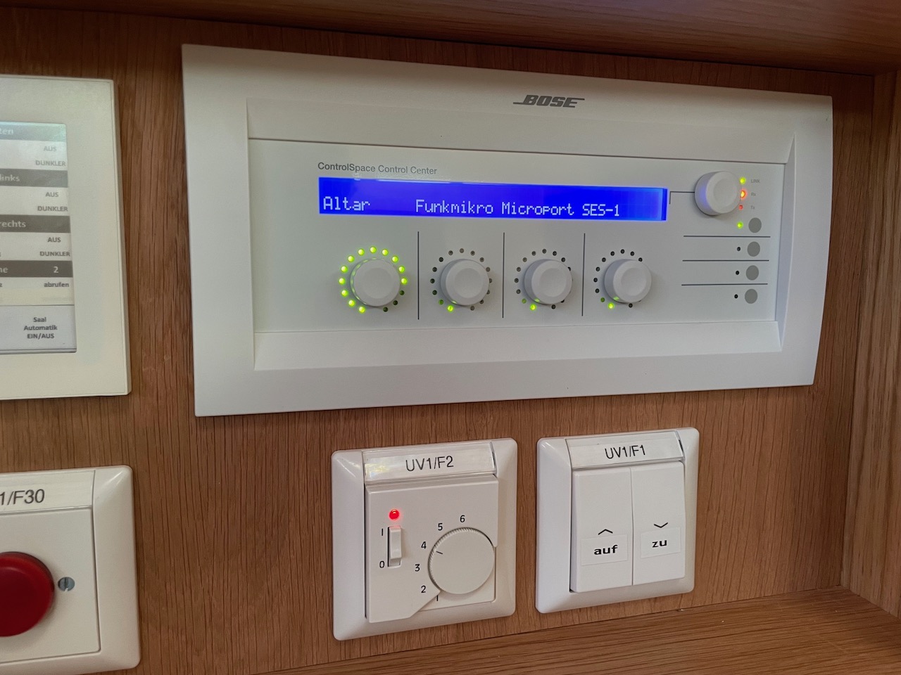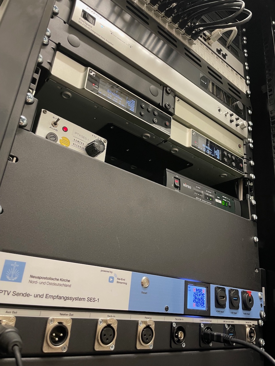 Die gesamte Anlage lässt sich bequem über ein Tablet oder ein Wandbedienfeld steuern. Zudem ermöglichen wir eine Live-Übertragung der Gottesdienste und Veranstaltungen in Bild und Ton (IPTV). Ergänzend wurde eine Hörunterstützungsanlage auf Funk-Basis installiert, die schwerhörigen Gemeindemitgliedern eine klare Tonwiedergabe garantiert.