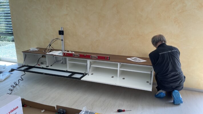 Unsere Kollegen Michael Rabenstein und Silvio Keil haben eine Spectral Möbelwand bei unserem Kunden montiert. Zusammen mit den neusten High End Heimkino-Produkten der Marke Loewe wurde somit eine klangvolle Technikwelt erschaffen.
