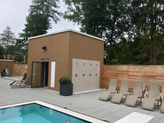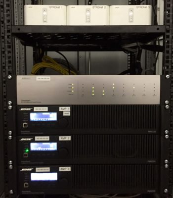 Im Saunabereich werden zeitgesteuerte Playlists abgespielt, welche über einen zentralen Server in die Zonen geroutet werden. Diese komplexe Anlage ist so konstruiert, dass sowohl der Hausmeister als auch die Reinigungskraft diese bedienen könnte.