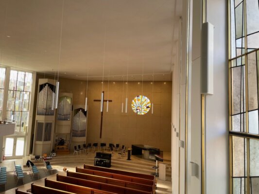 Für die Neuapostolische Kirche in Hamburg-Eppendorf haben wir eine innovative Beschallungslösung mit BOSE Professional Lautsprechersystemen installiert.