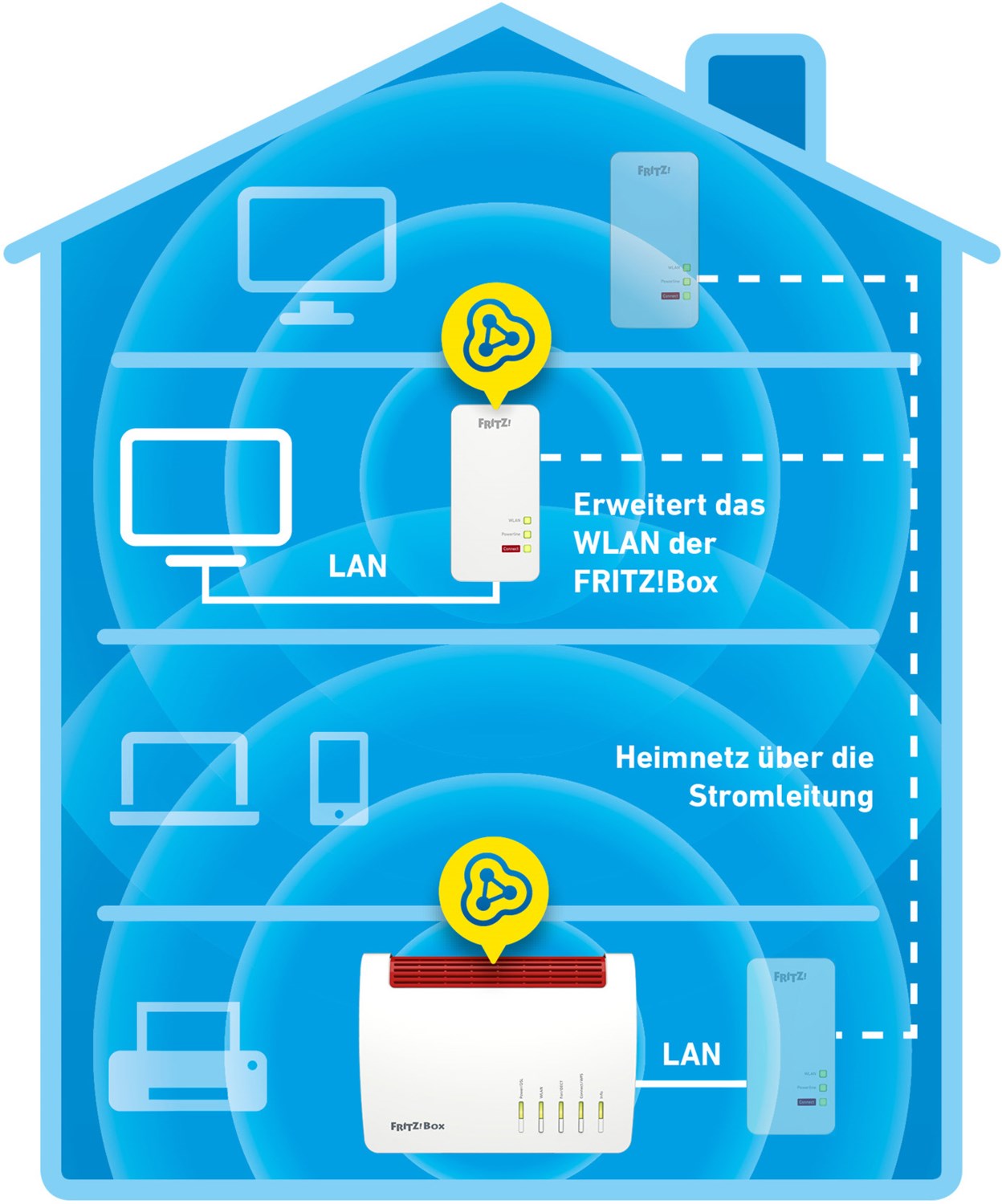 - Praktische Übernahme der WLAN-Einstellungen und -Verschlüsselung der FRITZ!Box