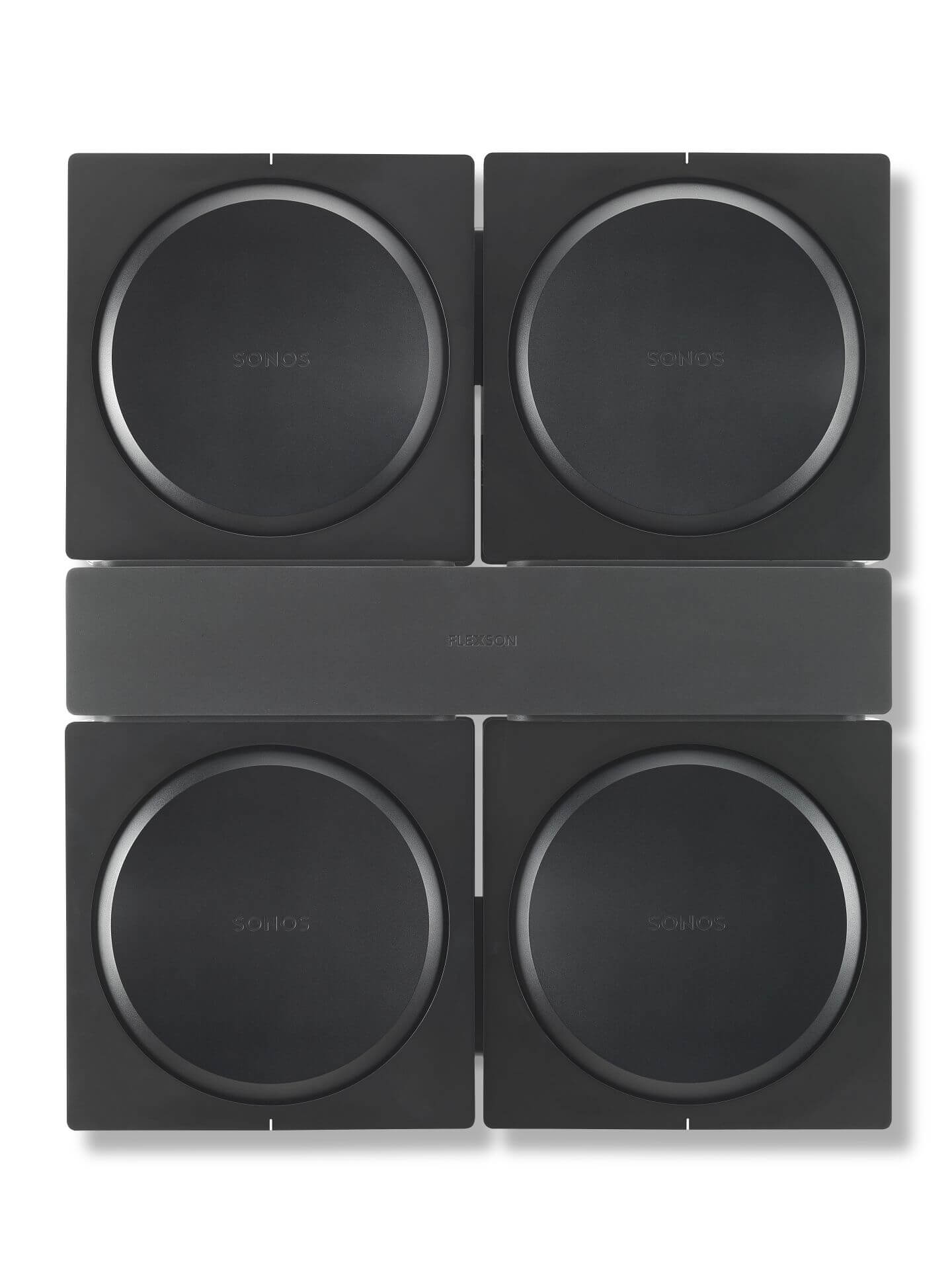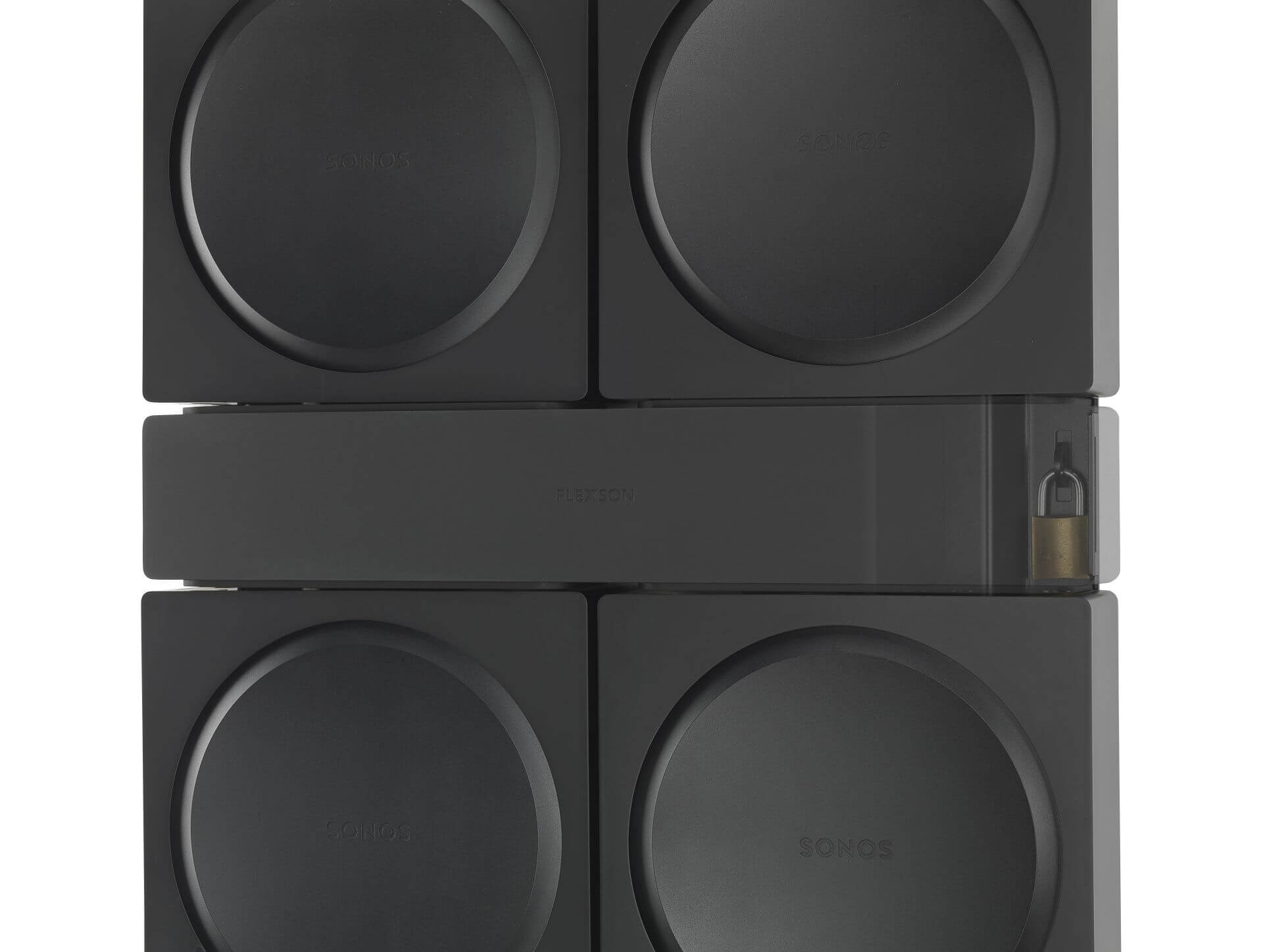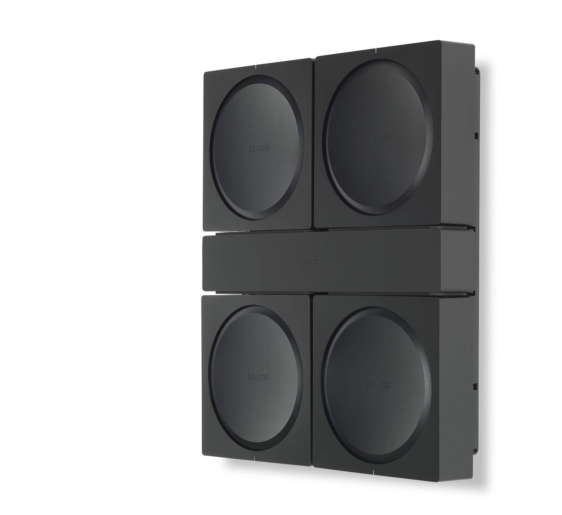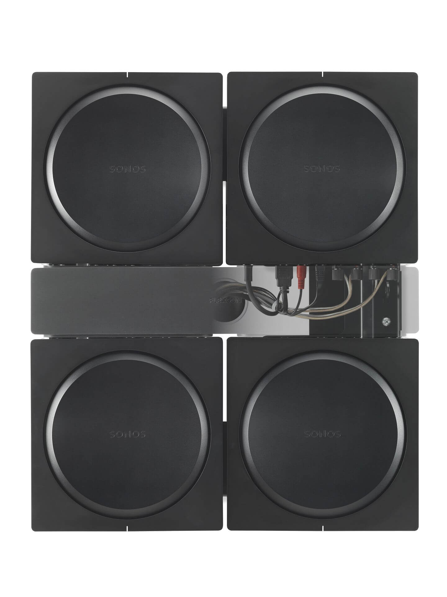 - Hält vier Sonos Amp an der Wand mit verdeckter Kabelführung