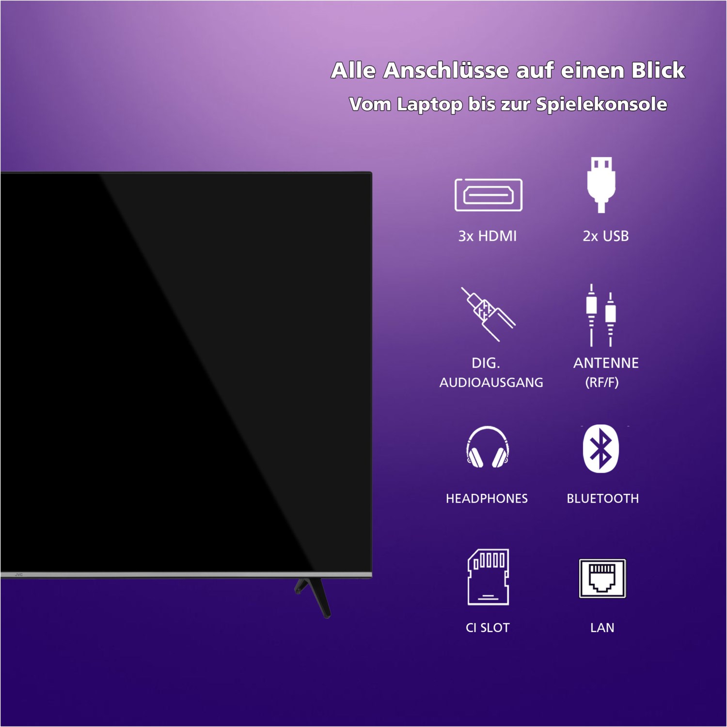 - DVB-T2/-C/-S2 Triple Tuner, 3x HDMI (HDMI 2.1 mit ALLM), 2x USB, CI+, Digitaler Audio-Ausgang (optisch), LAN, WLAN & Bluetooth integriert