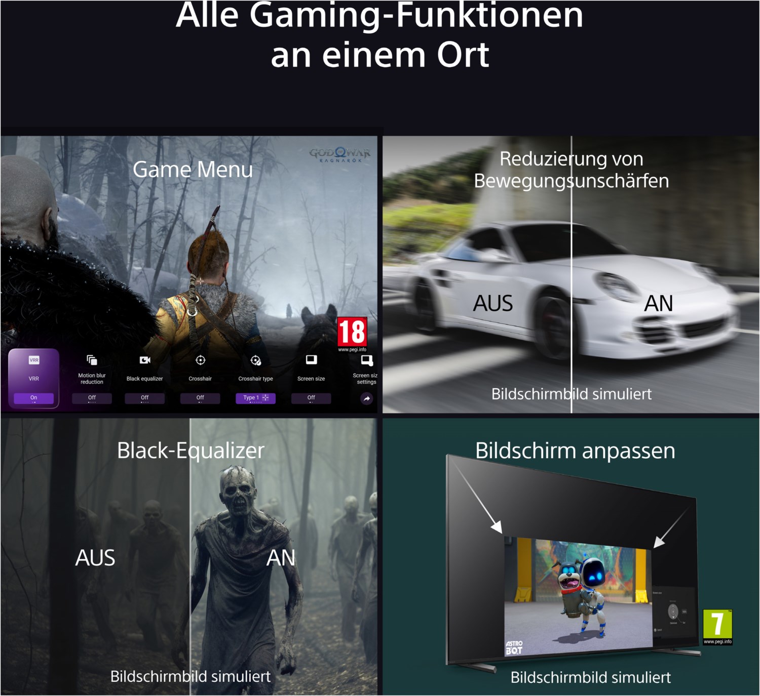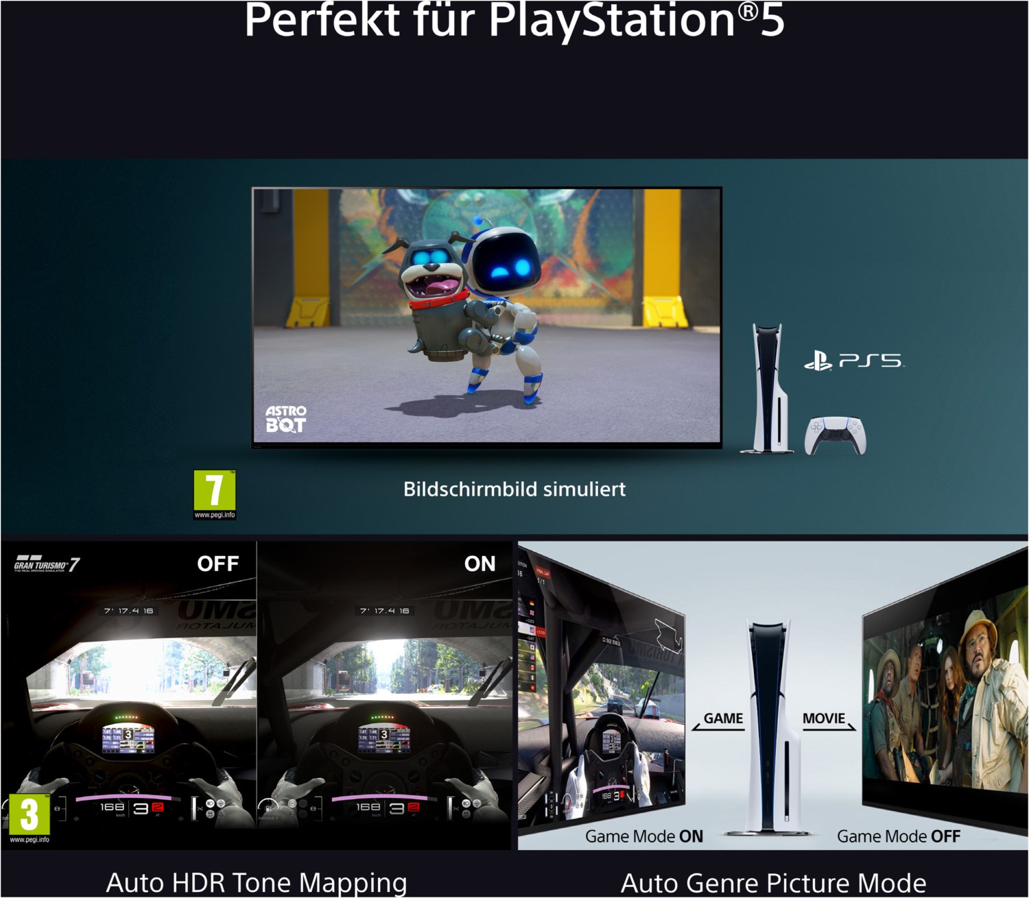 Für Gamer bietet unser Game Menu 2 alles, was man zum Gewinnen braucht, an einem Ort(8). 4K/120fps, VRR und ALLM gehören zu den Merkmalen von HDMI 2.1. (9), und wenn Sie noch mehr wollen, können Sie in Verbindung mit einer PlayStation 5 weitere exklusive Gaming-Funktionen nutzen (10). Mit PS Remote Play können Sie sogar aus der Ferne spielen (11).